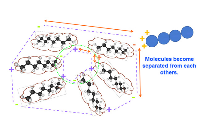 When fuel molecules flow inside the pipe, they naturally move, interact, or hit each other between the atoms of a molecule with the other atoms of the other molecule causing the attractive and repulsive forces to occur. These forces are known as intermolecular forces that cause the molecules to adhere together and form molecular clusters. Once these clusters enter into the engine or combustion, their cluster sizes become big and difficult for complete combustion.